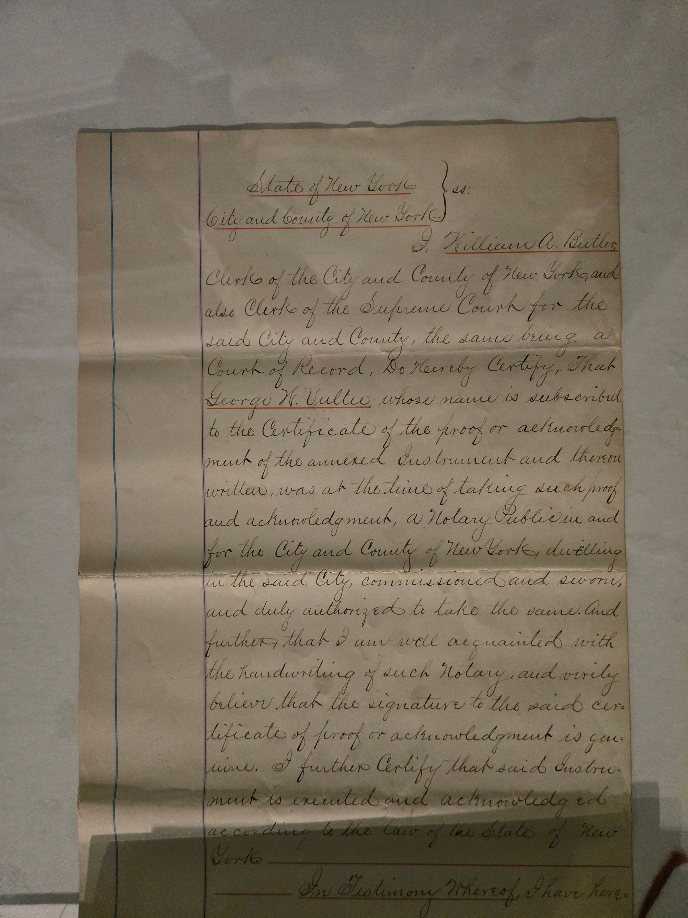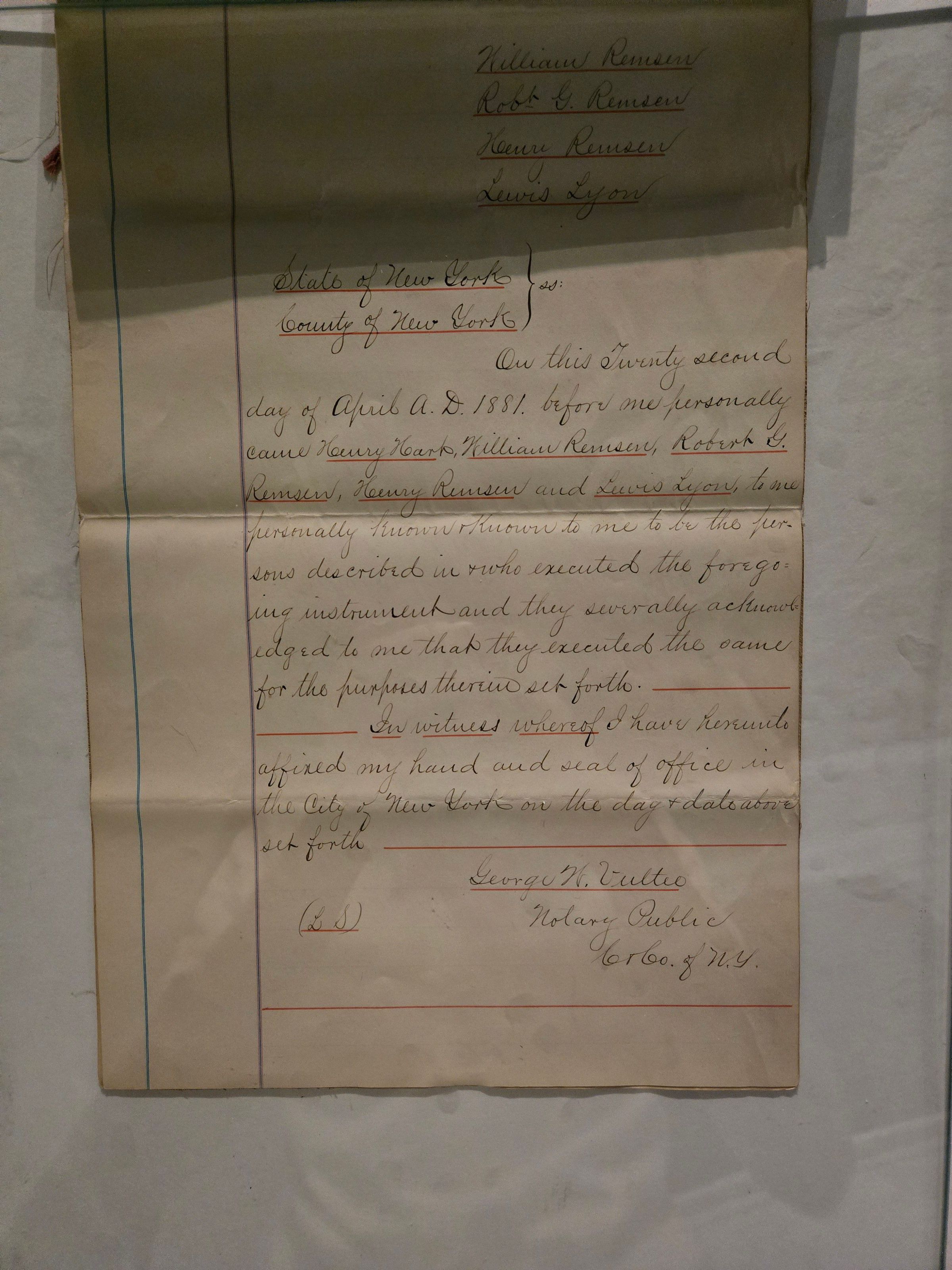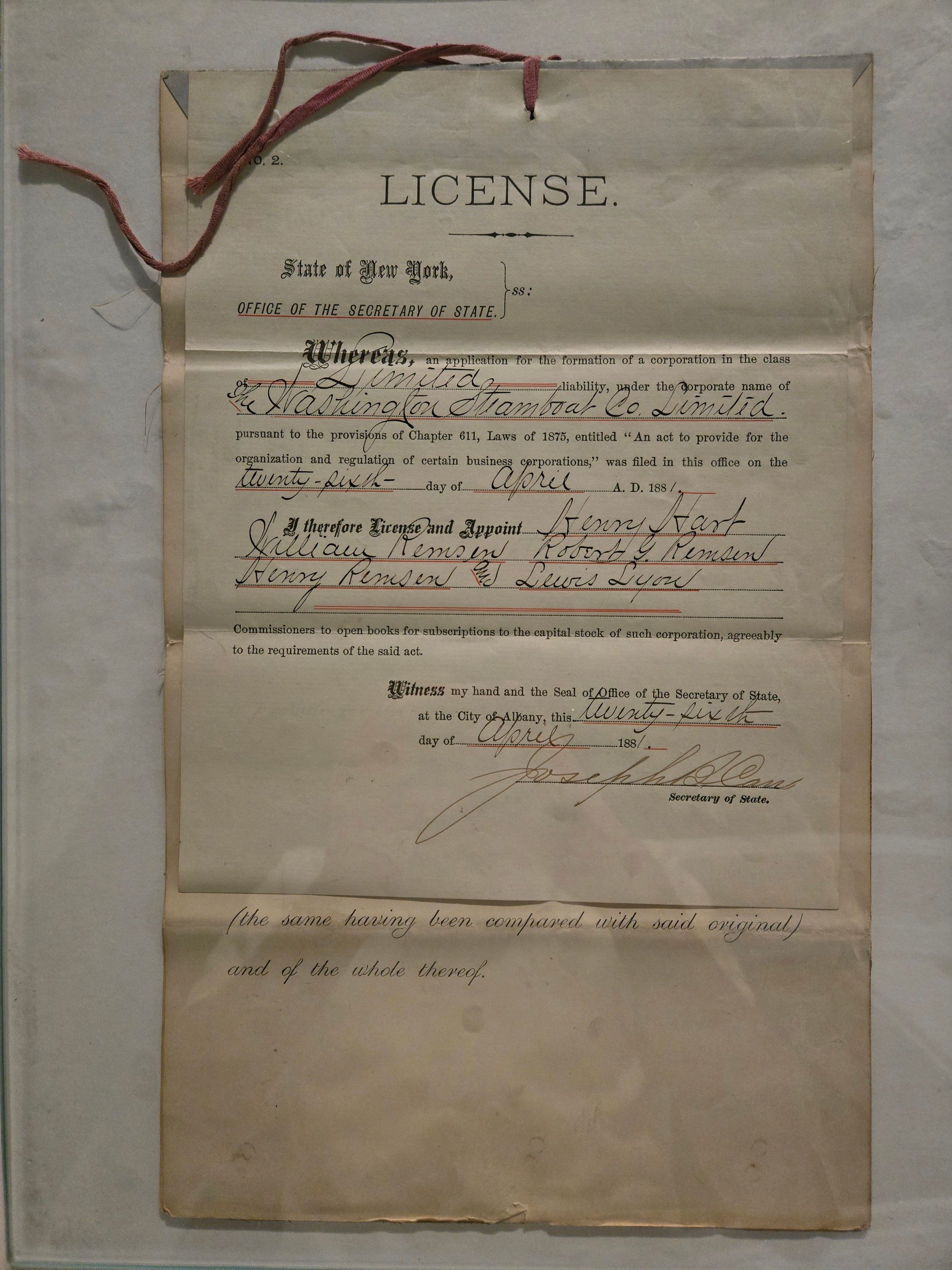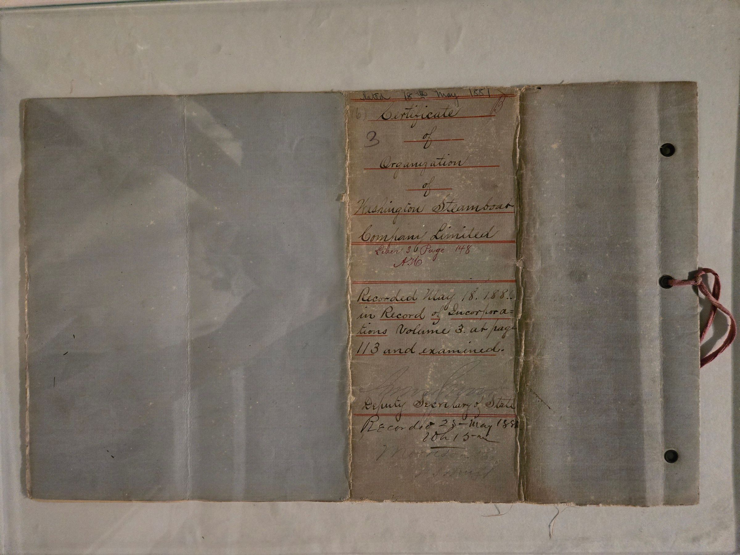 Original Articles of Incorporation for the Washington Steamboat Company (possible another name for the Norfolk and Washington Steamboat Company which was approved by the New York Secretary of State on April 26th, 1881.