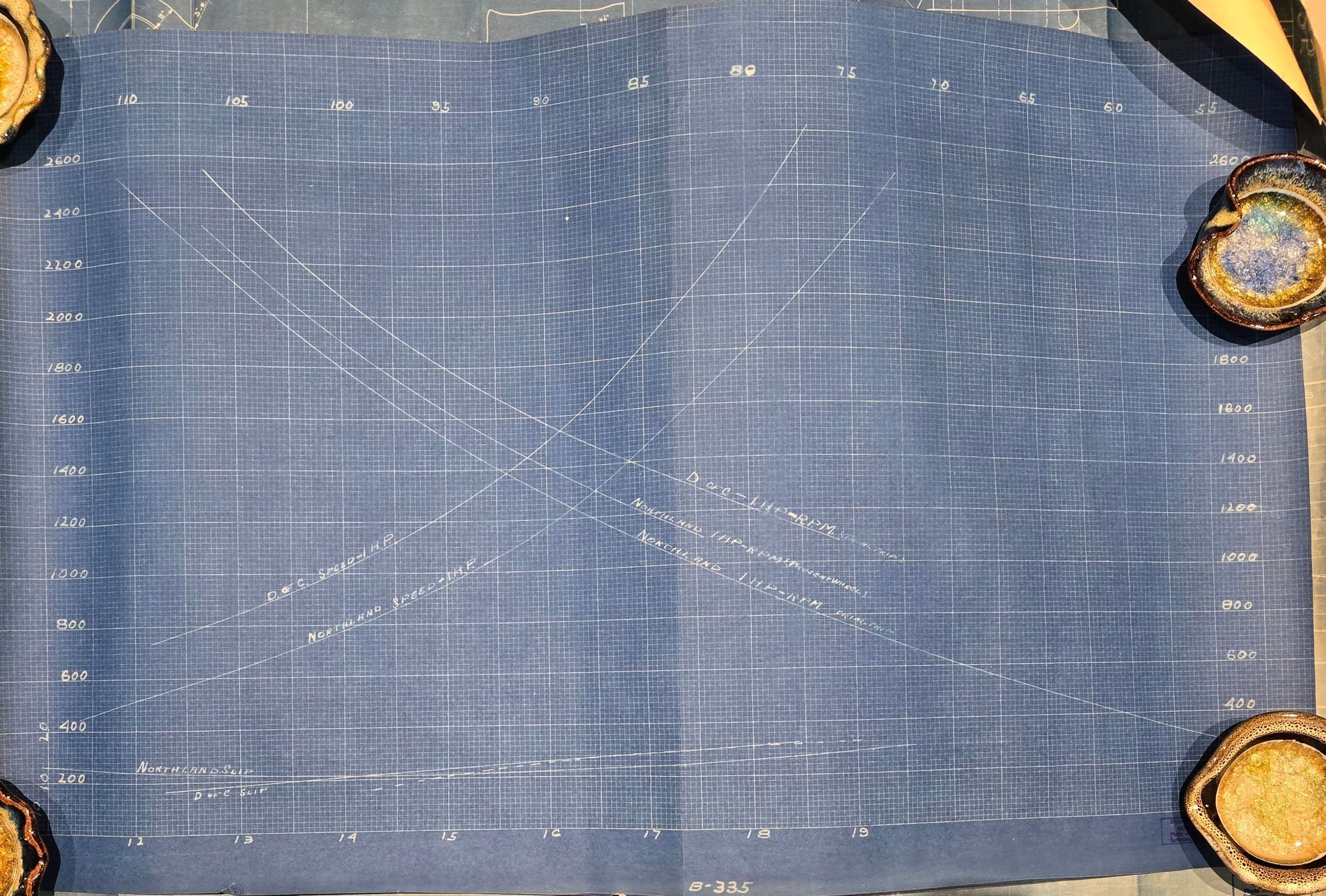 Misc. blue prints from the Hans Marx collection. Among the 4 sheets is what appears to be an engine output comparison between the District of Columbia and the Northland.