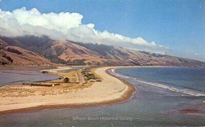 Color postcard of "SEA DRIFT" A sand spit on the Pacific Ocean north of San Francisco, extending from Stinson Beach, Marin County, California. Clouds cover the western slopes of Mt. Tamalpais." Also written on the back in ink: "I bought this card. I believe in 1970. When the picture was taken I don't know. It's just possible I bought it in 1959 - my first visit back." Then, in the address area is written in darker ink: Actually, 1959 seems more likely--SP." The description is apt, the colors are magnificent, and the sandspit still pretty sandy.Collection