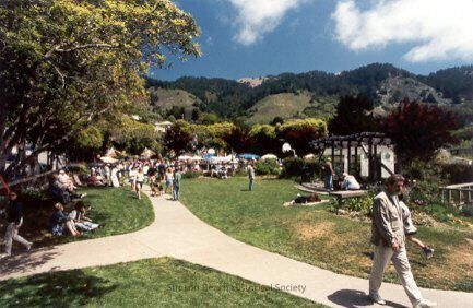Basically the same photo as the previous (1997-143) but at a different time. There are now more people walking down the pathways and more activity in the background. The sky is bluer and there are a few white clouds.Collection