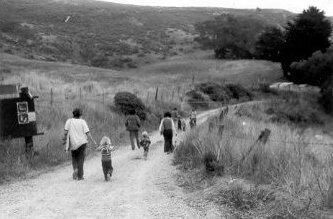Twelve black and white photos of a preschool field trip to see the animals at Slide Ranch.Collection