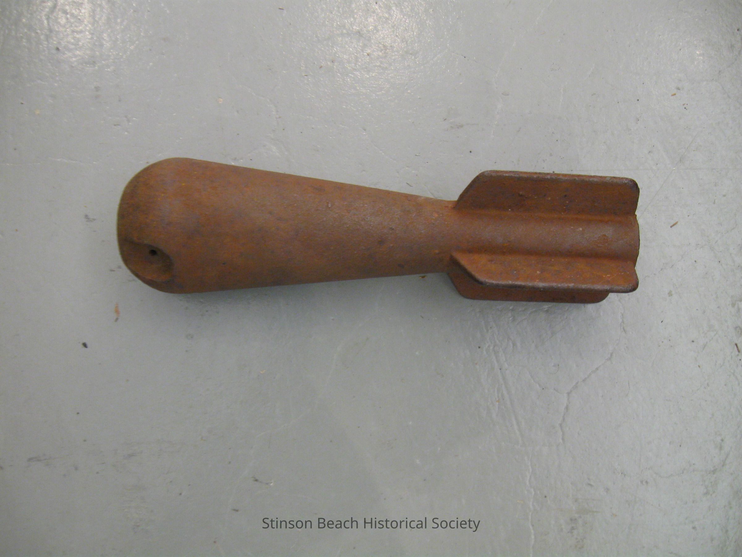 An iron dummy of a mortar shell found in a Stinson Beach garden.Collection