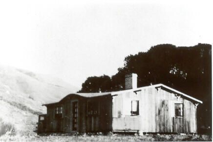 A one-story wooden cottage sits at the base of a hill with a copse of trees behind it. It has a brick chimney. It is identified in the family album but outside of the name beginning with P, it is difficult to decipher. It also says "where Duke Airey (?) started his but didn't finish."Collection