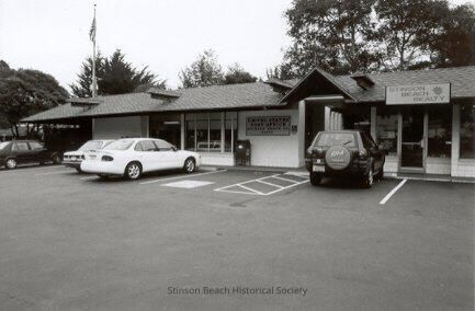 Post Office complex closer up with just the PO and Stinson Beach Realty visible. Rav4 parked in front. Three other cars parked in front of PO.Collection