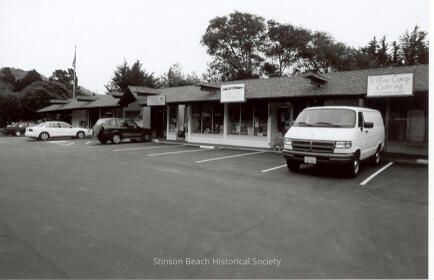 Another Post Office complex view looking towards the south. The first sign on the building is Willow Camp Catering. White van parked in front. No cars in front of Off The Beach (boats). Dark SUV in front of Realty. White sedan in front of PO.Collection