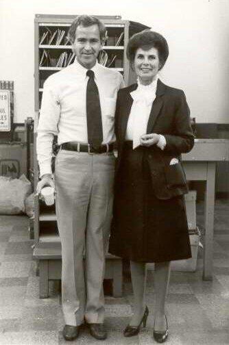 Gloria Conradi with an unidentified gentleman standing in the Stinson Beach Post Office on the day, I believe, that she became Acting Postmaster.Collection