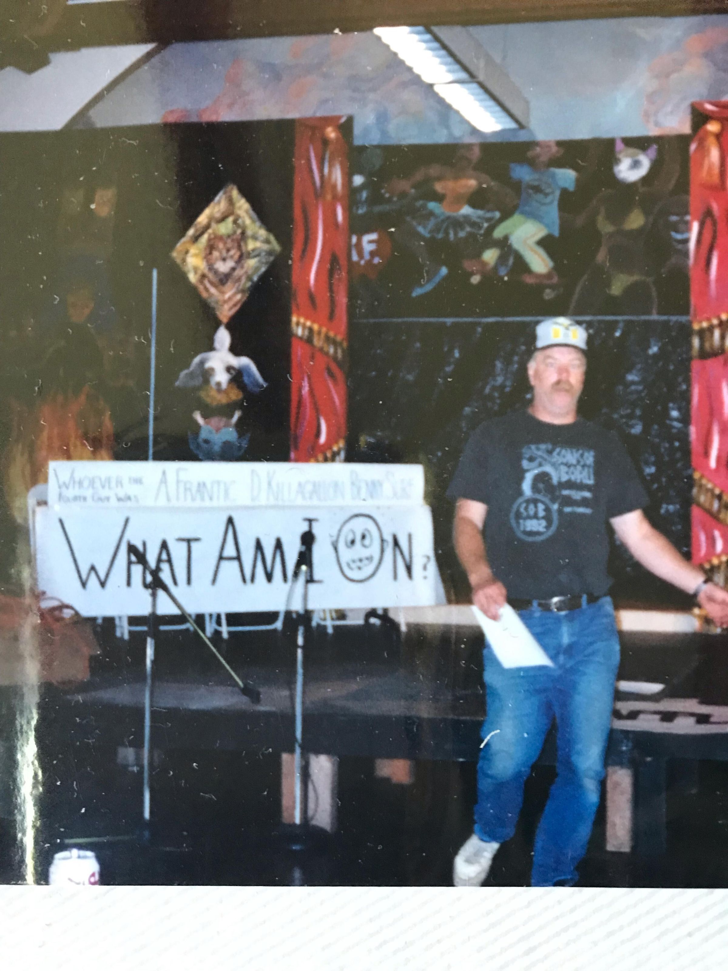Charlie Lenhoff at rehearsal for 1996 Variety Show. Charlie was MC for many events over the decades including caller at Spaghetti/Bingo. Charlie directed and Raven produced this event.