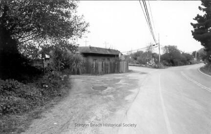 This black and white photo is of the same building as in 1998-265-01 and 266-01 but the camera is on the same side of the road (the left) as the building so that the road is running down the right side of the picture and the telephone wires run directly overhead.Collection