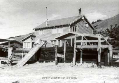 After the storm of 1960, some boards are left leaning against a wooden sea wall. (Is this where a house once stood?) The 2-story house behind it seems in good shape.Collection