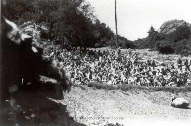 Large group of people sitting on the mountainside - possibly watching a play at the Mountain Theater on Mt. Tamalpais.Collection