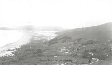 Similar to previous (1999-279) but slightly zoomed in. A bit of the auto road entering the village is still visible, as are the houses and the Lagoon in the background. Photo is washed out.Collection