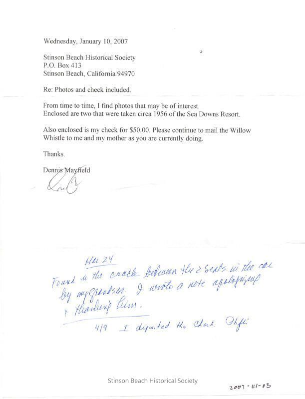 Also, enclosed is my check for $50.00. Please continue to mail the Willow Whistle to me and my mother as you are currently doing.