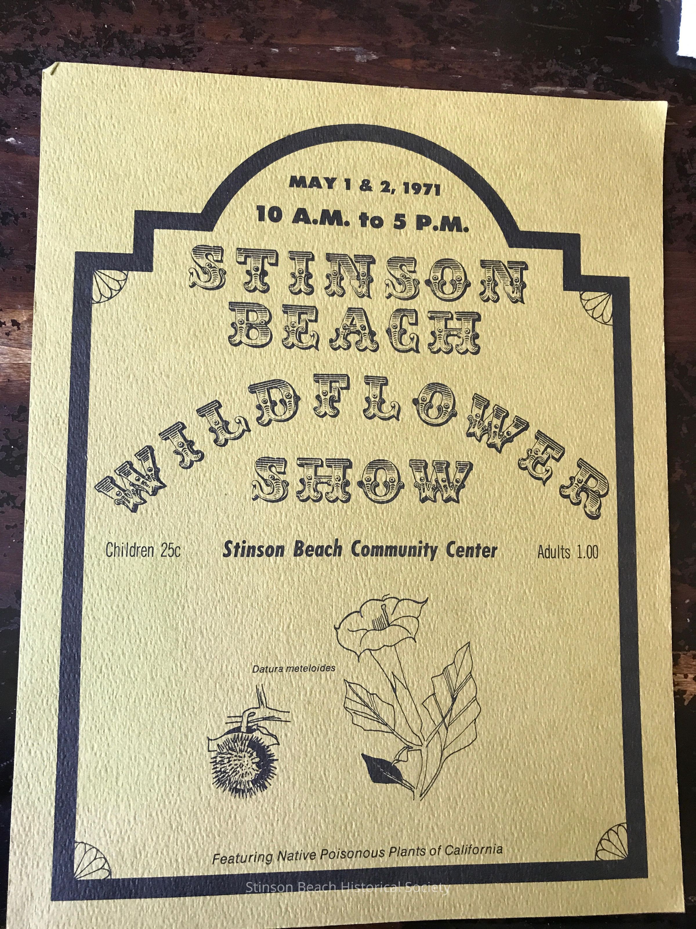 Wildflower Shows were so popular they were moved to Oakland to accommodate the crowds. The 4 founders of the Stinson Beach Wildflower Show were: Leary, Anne/ Griffin, Marna/ Shockey, Roberta/Sherfey, Barbara (later Menzies). They would hike for miles through federal and park lands collecting rare species for the show.
