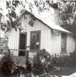 This black and white photo is yet another view of the building described in #2000-234-01. It is closer to the building so the building takes up more of the frame and the background is less. It was taken at a different time however as the trees are in full foliage. See notes.Collection