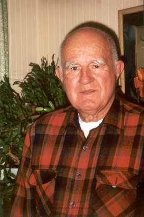 This color photograph is of a balding man with white hair and eyebrows (Hal Airey) in a red and black plaid shirt. There is a tan wall and some house plants behind him.Collection