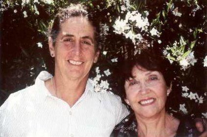 A color photographic print of two woman standing in front of potato vine hedge taken at the time of their oral history interview by Sally Veauta. Stephanie De Maria who stands on left is the daughter of Dorothy Eggers De Maria.Collection