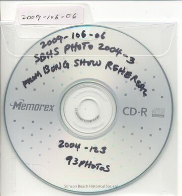 CD Disk containing digitalized SBHS Photograpic Collection, 2004-123 complized of 93 photographs of the Bong Show rehersal.Collection
