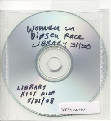 A CD disk with photos of the SBHS library display on May, 2008 titled "Women in Dipsea Race".Collection