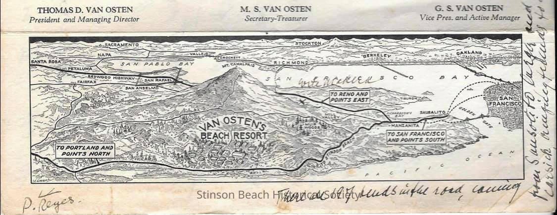 Van Osten's resort ~1930's rent cottages and sold lots. It had a restaurant (see menu)and entertainment. See, also, 1993-676 enlargement in Ken Shockey Collection (over-sized photos) which shows it to be at the location of Sea Downs.Collection