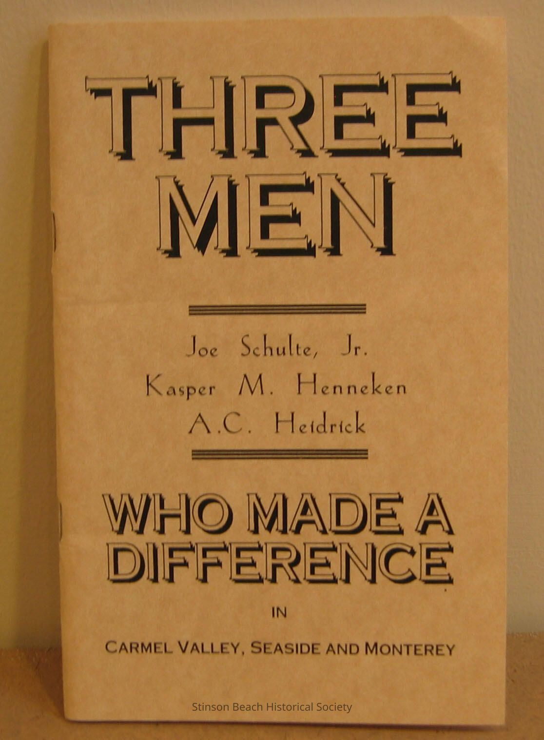 Three Men Who Made a Difference Joe Schulte, Jr., Kasper M. Henneken A. C. HeidrickEntry/Object ID