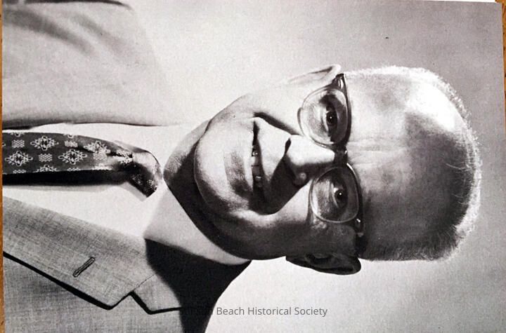 A portrait photograph of George P. Leonard was taken from the booklet of Golden Beaver Recipients of the year in 1960s. The booklet included George P. Leonard as the recipient of the year and included short biography of him (2016-121-02). The photographic copy was taken by IPhone on the occasion of visit to his daughter, Barbara Robben, who still take care of the house and now owns the house George and Wilma lived on Avenida Olema. He was born in 1904 and despite of his humble origin, by 1960 he became the largest land owner Stinson Beach ever had. Most of his property is now under GGNRA.Collection