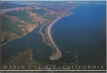 Aerial view of the Stinson Beach Peninsula stretching from the tip of Seadrift over Mount Tamalpais to San Francisco in the distance. A shadow Bolinas extends into the Lagoon.Collection