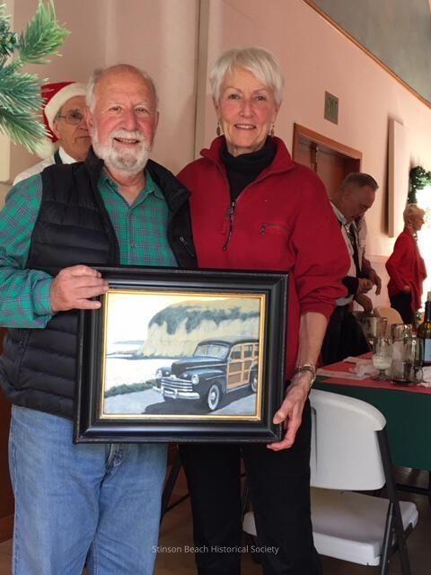 Larry & Kathlyn Baskin stand together holding their raffle prize - a Jon Francis painting.Collection
