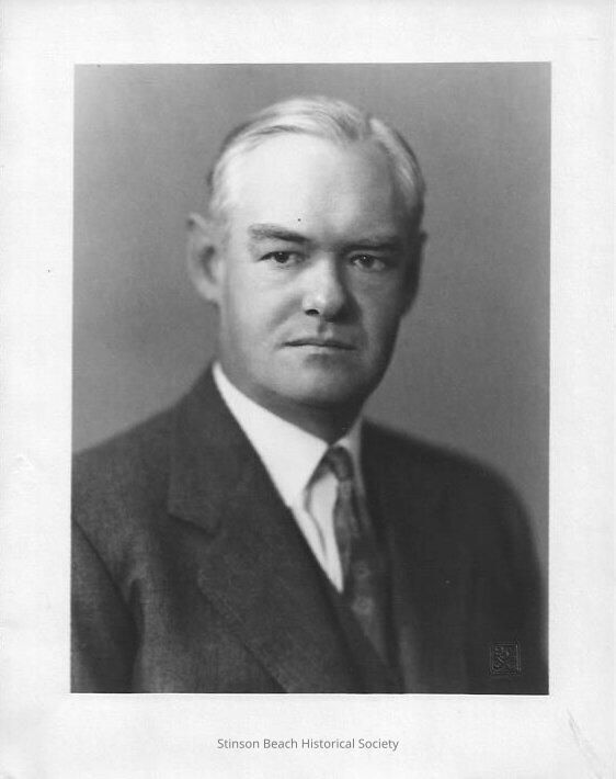 This is a black and white portrait photograph of William Kent Jr taken in 1960s. The photograph shows his head and shoulders. He has whitish hair parted on the left. He looks straight at the camera. He is wearing a white shirt with a tie and dark jacket. He first tried to give the sandspit he inherited from his father to the county and state park systems without success, so he developed it as residential lots, which became Seadrift with its inner lagoon. See Seadrift History.