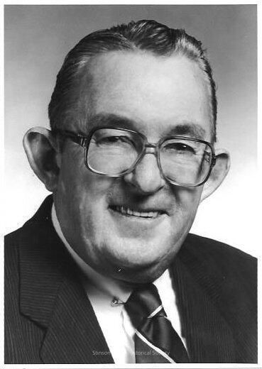 This is a black and white head shot of William Kent III. On the back of photo : Mr. William Kent 3rd is written in red pen and Gabriel Moulin Studios, San Francisco is written in black pen. In this photograph he is smiling and wearing eyeglasses. His greyish hair is parted at the left. He is wearing a dark jacket and a tie with diagonal pattern on white shirt. William Kent III inherited the Seadrift development from his father, William Kent Jr. who developed it. He sold it in 1975. See Seadrift History.