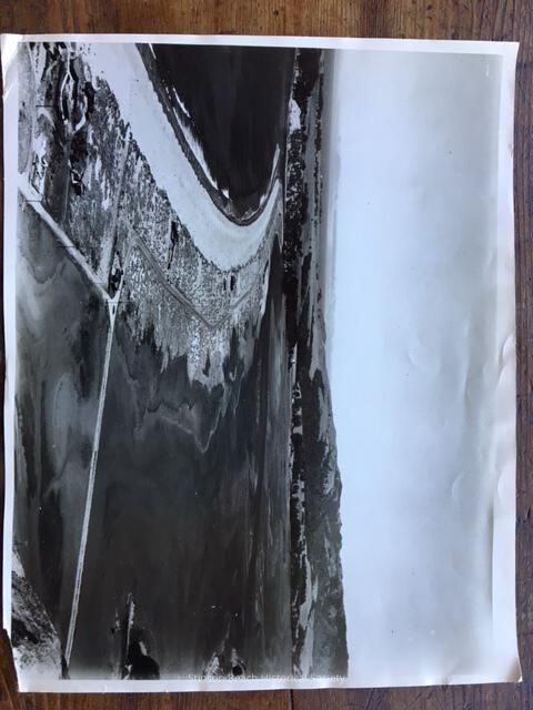 This photo is from a large format, 11x14 print of an aerial photo print of Seadrift in 1952. Probably taken at the same time as 2018-109-07. It shows the sandspit with the causeway and the end of the Calle del Arroyo approach. The development only has the Seadrift Road and its street lights with three houses on the ocean front. Neither the Seadrift Lagoon nor Dipsea Road are yet constructed. It is stamped Fred Mae Aero Photo 1952 #4 on the back.Collection