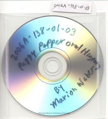 Peggy remembers hiking to Stinson as a child before her family bought land here in 1919. She recalls swimming and other beach adventures, her early friendships, and the many jobs she had as a teenager in town. She was a parttime resident until she retired in the '70s and names the many locals who helped her redecorate her house. She speaks of her involvement in the Allied Arts rummage sales, the Church bell tower, and the water district.Collection