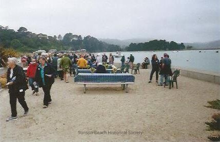 People gathering by the Seadrift tennis court for hors d'oevres and to listen to a presentation by Lucy Kent Maushardt - A History of Seadrift & Garden Tour was co-sponsored by the SBHS and the Seadrift Social Club in mid-June of 2018.Collection