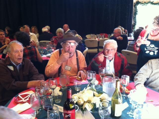 Three gentlemen enjoying their dessert: Don Slack, Val Agnoli and friend. In addition to the lovely floral table decoration there are a couple bottles of wine and a lot of empty glasses.Collection