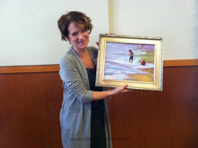 Grand prize raffle winner (name) holds up her winning painting by Kit Shepard.Collection