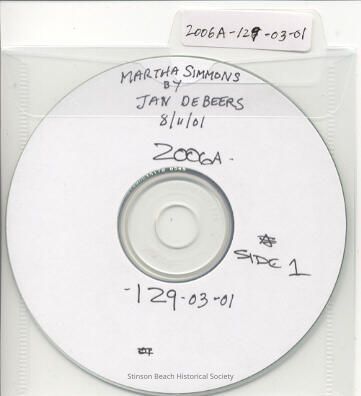 Martha recounts her grandmother's (Adelaide St John Eaton) history at Willow Camp circa 1915 from postcards sent to her and then her recollections of how Stinson Beach was born. She tells of buying La Casita (the Mouse Hole) on Calle Occidente in the late '50s and some of their famous connections. It has remained a beach cottage for various family members to use and was once rented to Gail and Jonathan Greene.Collection
