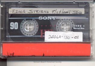 Edna remembers moving to Stinson Beach in 1966 with her husband Jim Stevens and their 4 children and opening a hardware store (at present the location of the Gym). She mentions many ladies she associated with through various organizations; she remembers the anchovie die-off in the Lagoon; and her children Bobby (and his history with the Parkside), Kenny (current Fire Chief of Stinson), Julie (von Savoye) and Patty (di Masi).Collection