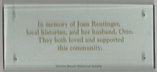 glass. It was made to be mounted on the cabinet of Historical Corner of the Stinson Beach Library.Collection