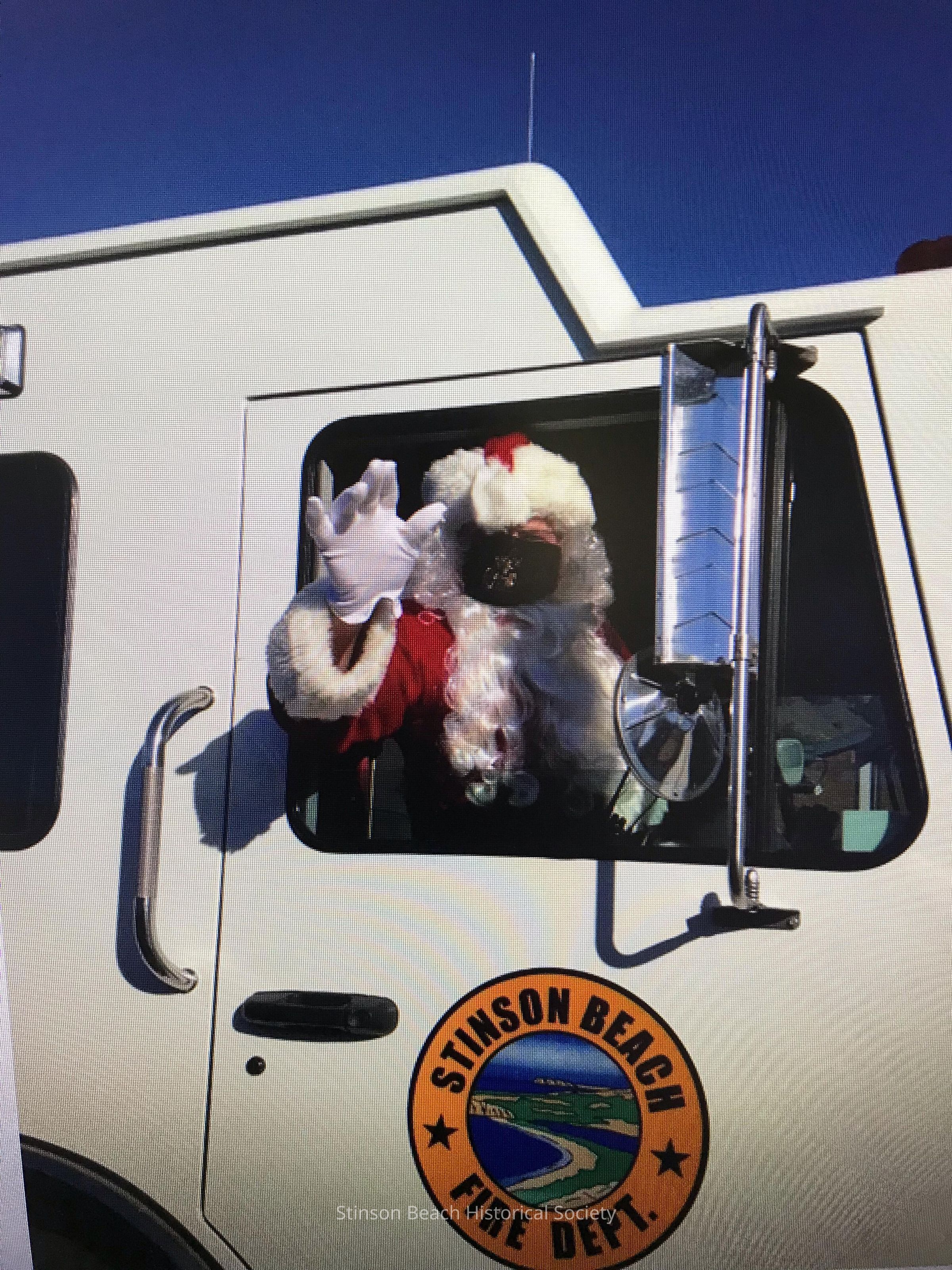 Santa always arrives by Fire truck. Due to Covid, Santa is wearing mask. This year he was outside the Community Center while volunteers held a walkie talkie for the children to tell Santa their messages.Collection