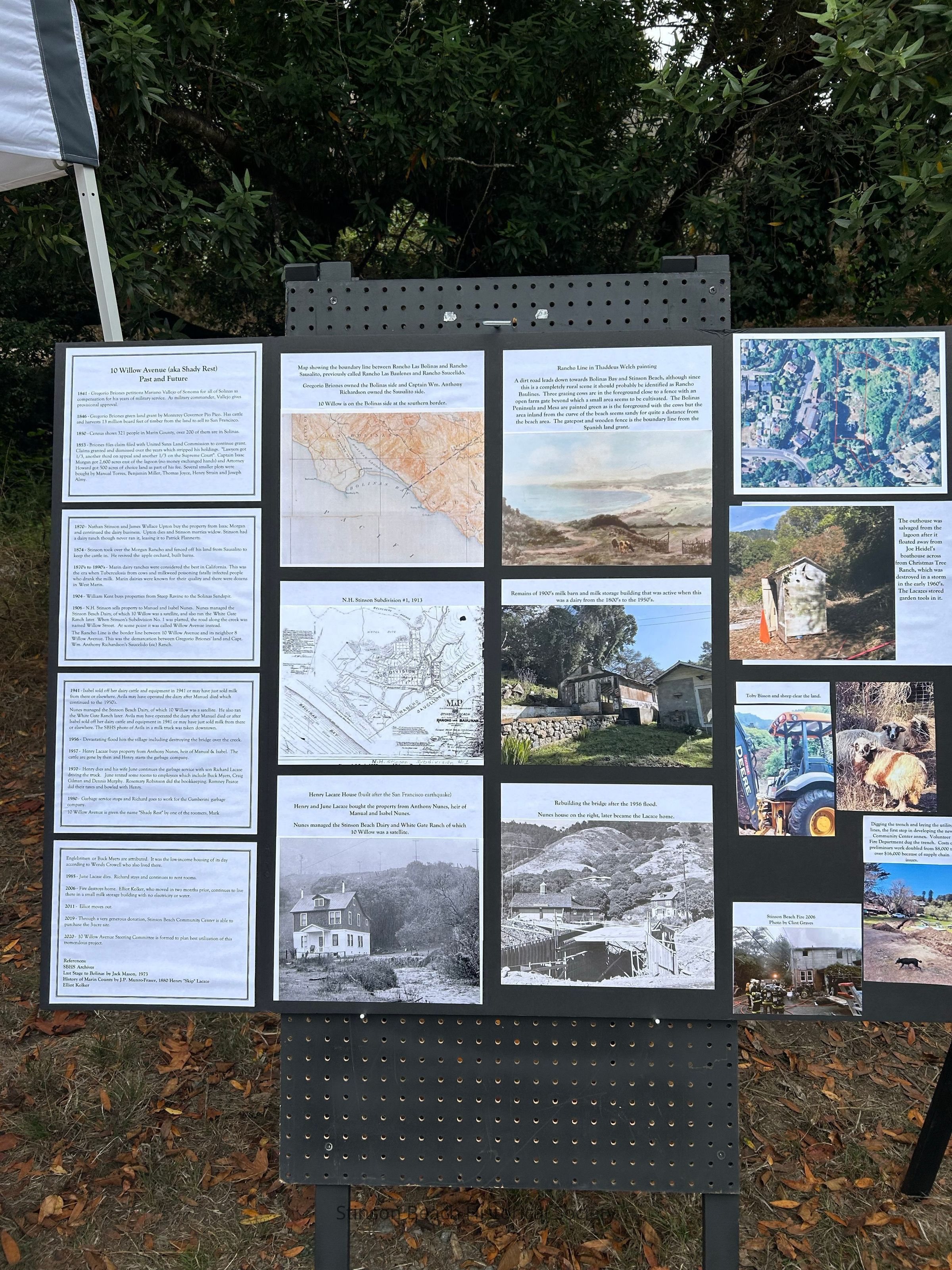 SBHS display of history of 10 Willow. It was a dairy farm, then a dump. The house burned down in 2016. Prior to that, several locals lived there. It was also known as Shady Rest.