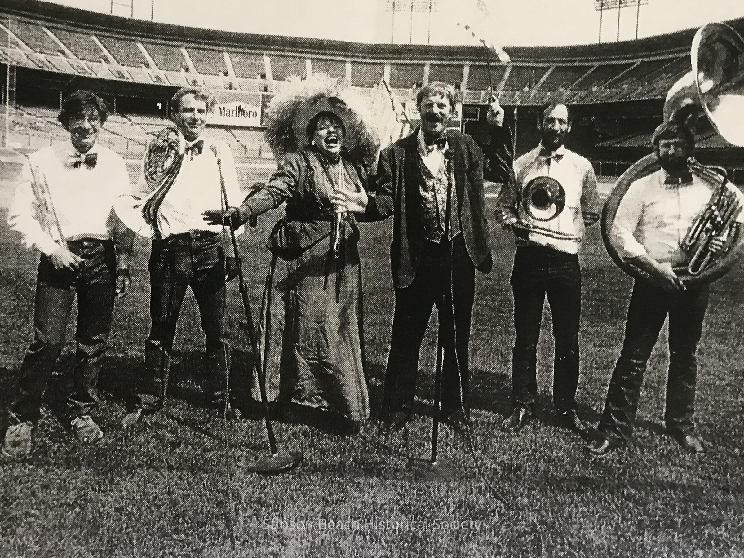 Left to right: Vasco Agnoli, high school student; George Marzotti of Bolinas; Charselle Felecia Hooper of Bolinas, lead singer in many West Marin musical productions; Charlie Lenhoff, also active in many musical scenes & organized this event through one of his many contacts; Davic Murray of Bolinas who conducted many musical events, taught music and was part of the Tuesday Night Band; Jay Eickenhost, Park Ranger stationed at GGNRA.