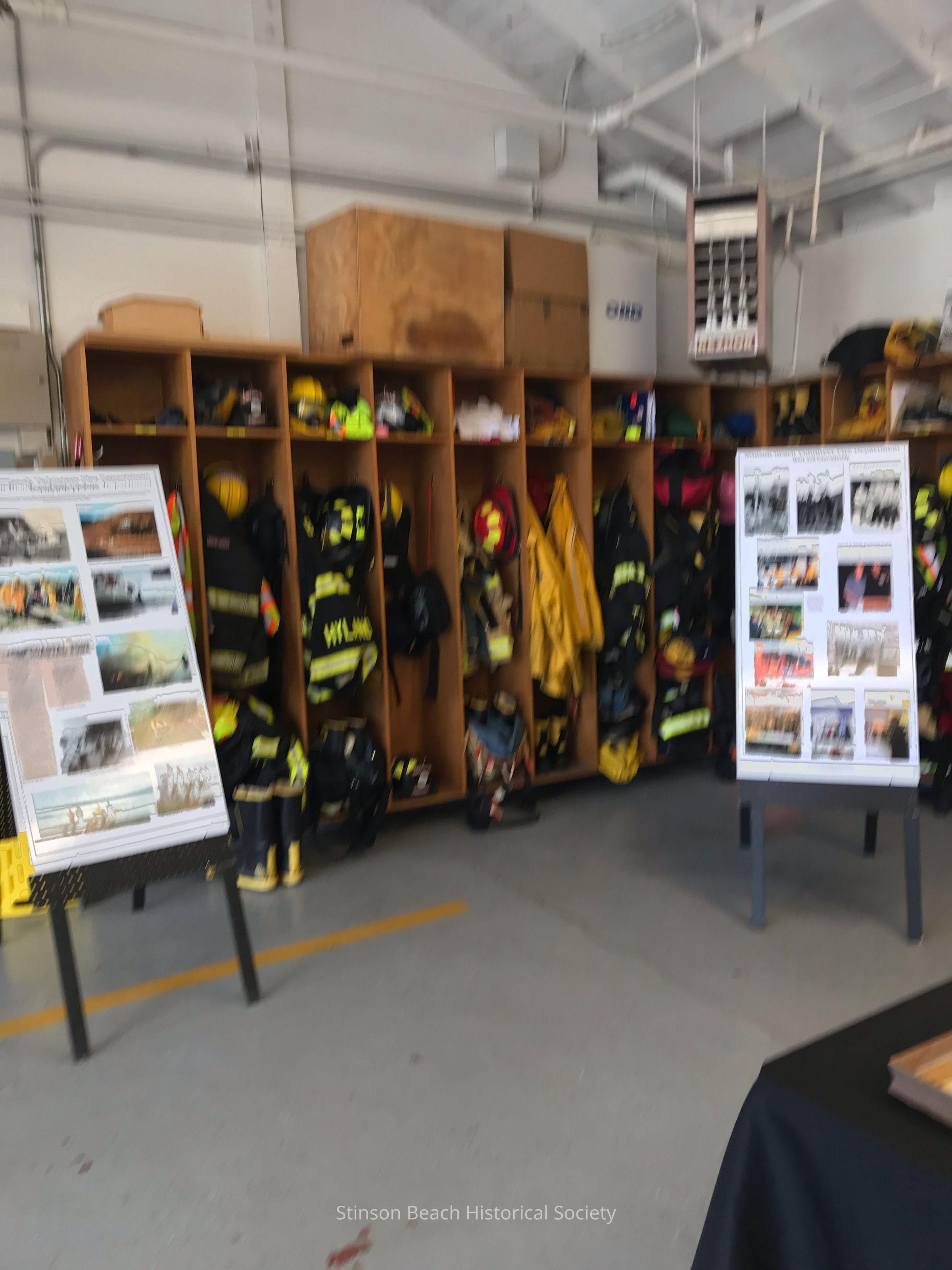 Rather blurry photo of displays. Easels were spaced for easy access to emergency gear, just in case.