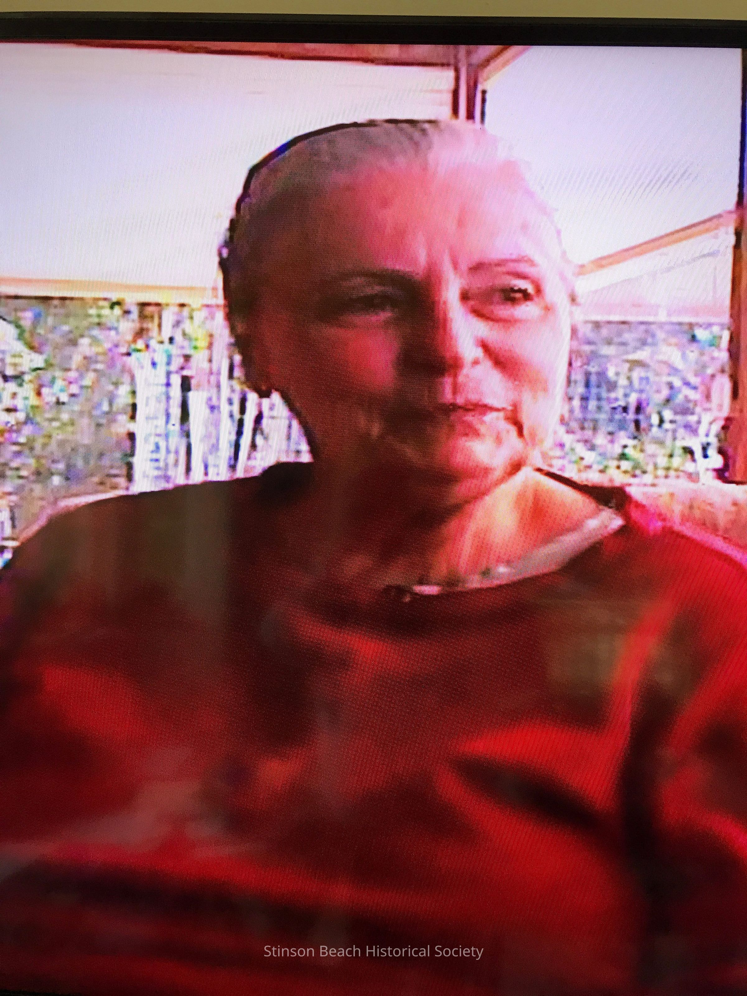 DVD of Andrea DiMarco recounting her arrival in 1968. She was involved in the Progressive Club, later with the efforts to recall the Bolinas Harbor District which was a pro-development project to turn land from Stinson Beach to Point Reyes into a population of over 100,000 with 4-lane highway. She was also helping during the Oil Spill of 1971 and worked at the Parkside in1973 & stayed for many years. She replaced Hugh Daugherty on the Water Board who had been pro-development.