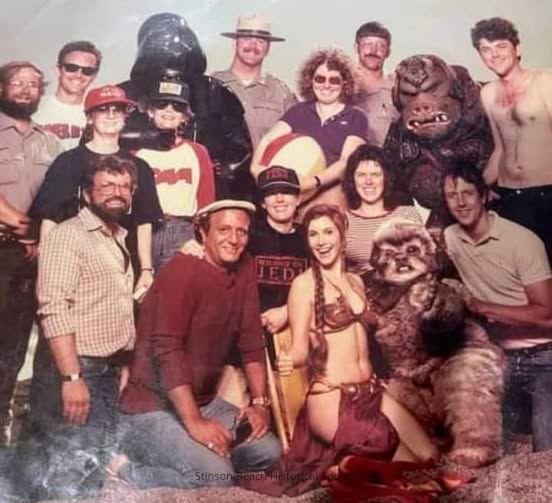 Star Wars was filming on Stinson Beach. Here the crew posed with Park Rangers & locals. Some identified include: