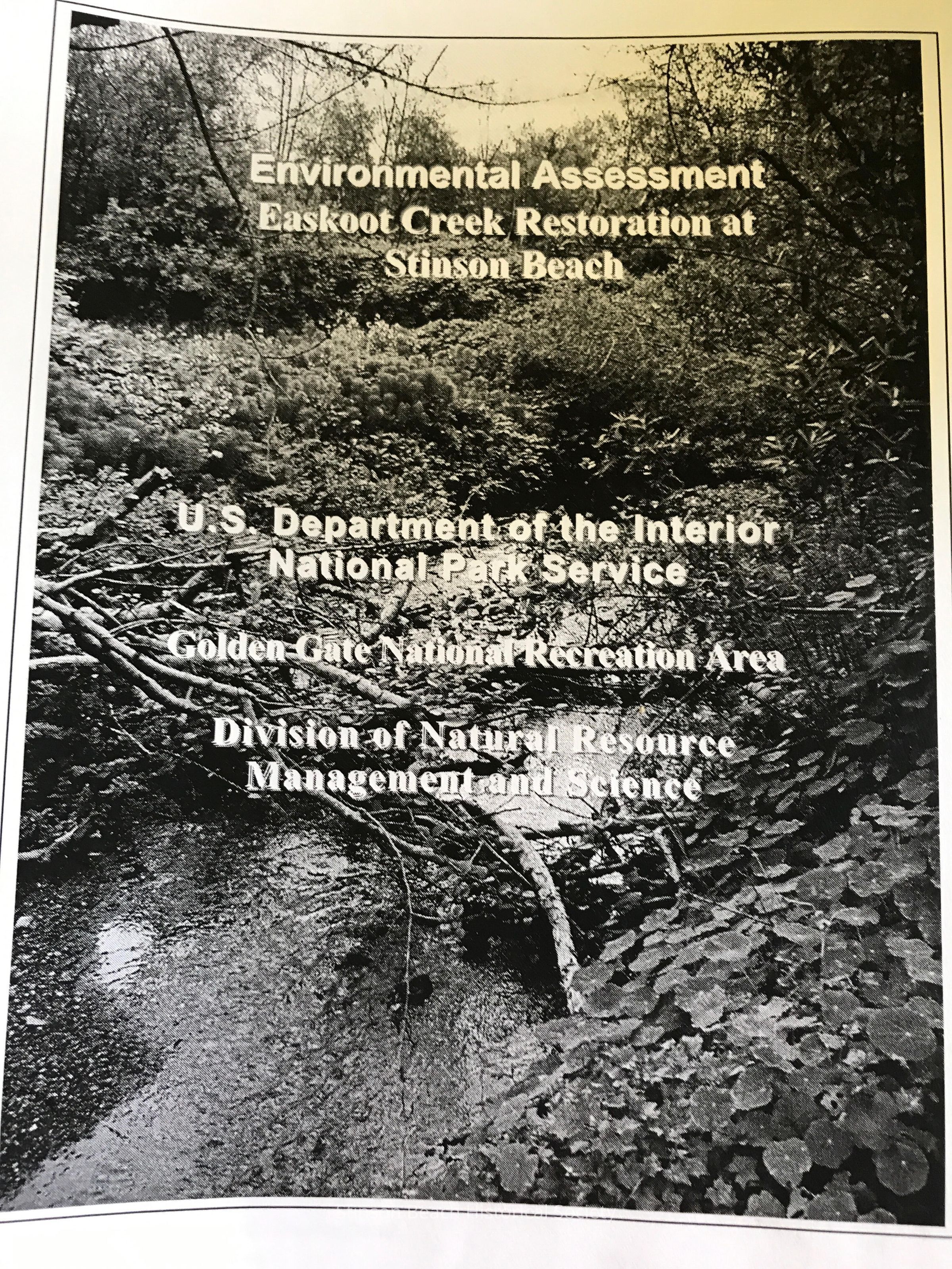 This report, done in 2000 or later, by Dept of Interior, GGNRA and the Division of Natural Resources, reviews soil, geology, hydrology & water resources, natural resources as wildlife, vegetation, etc