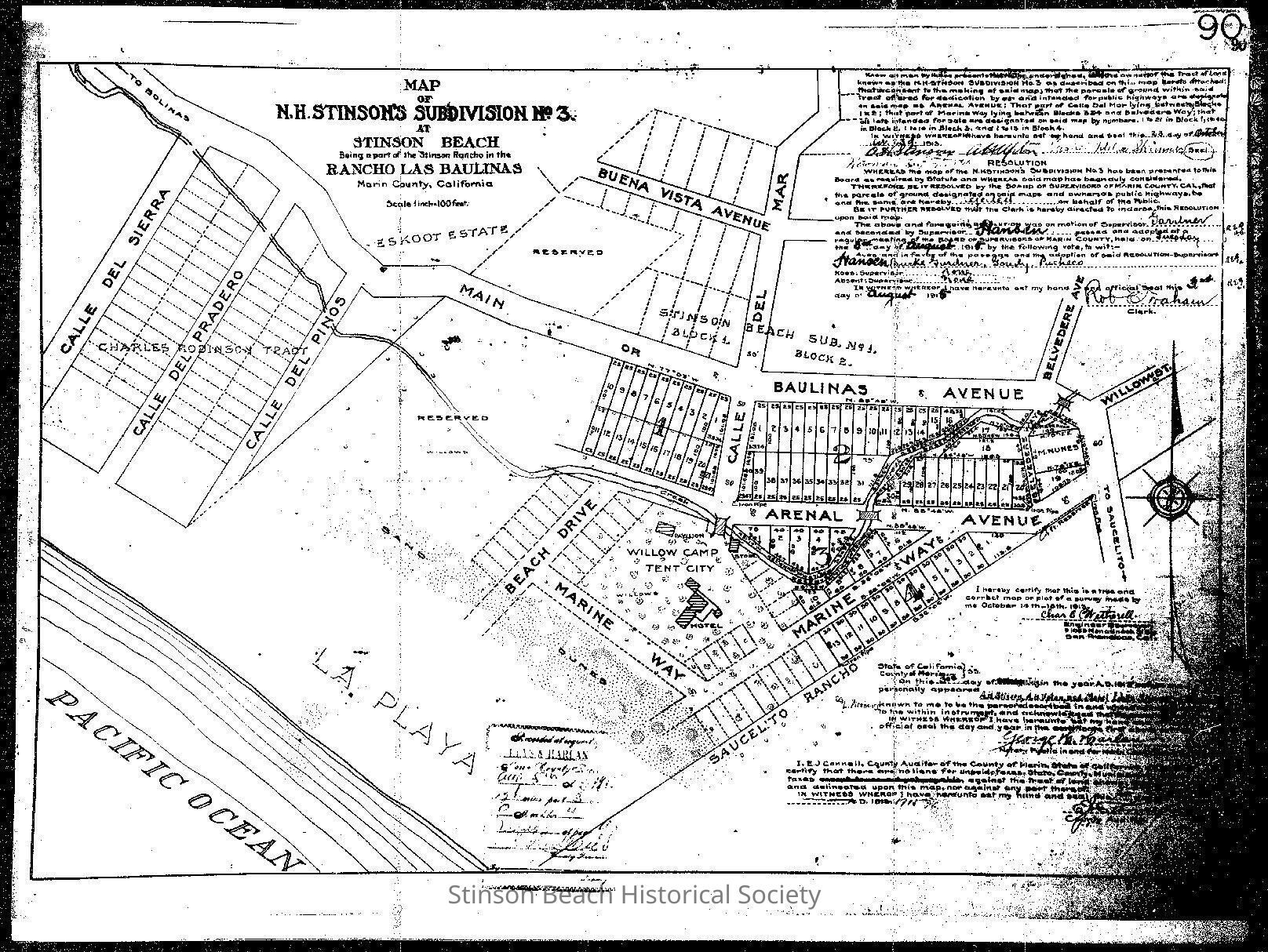 Map of Stinson Beach from Calle del Sierra to Willow Street
