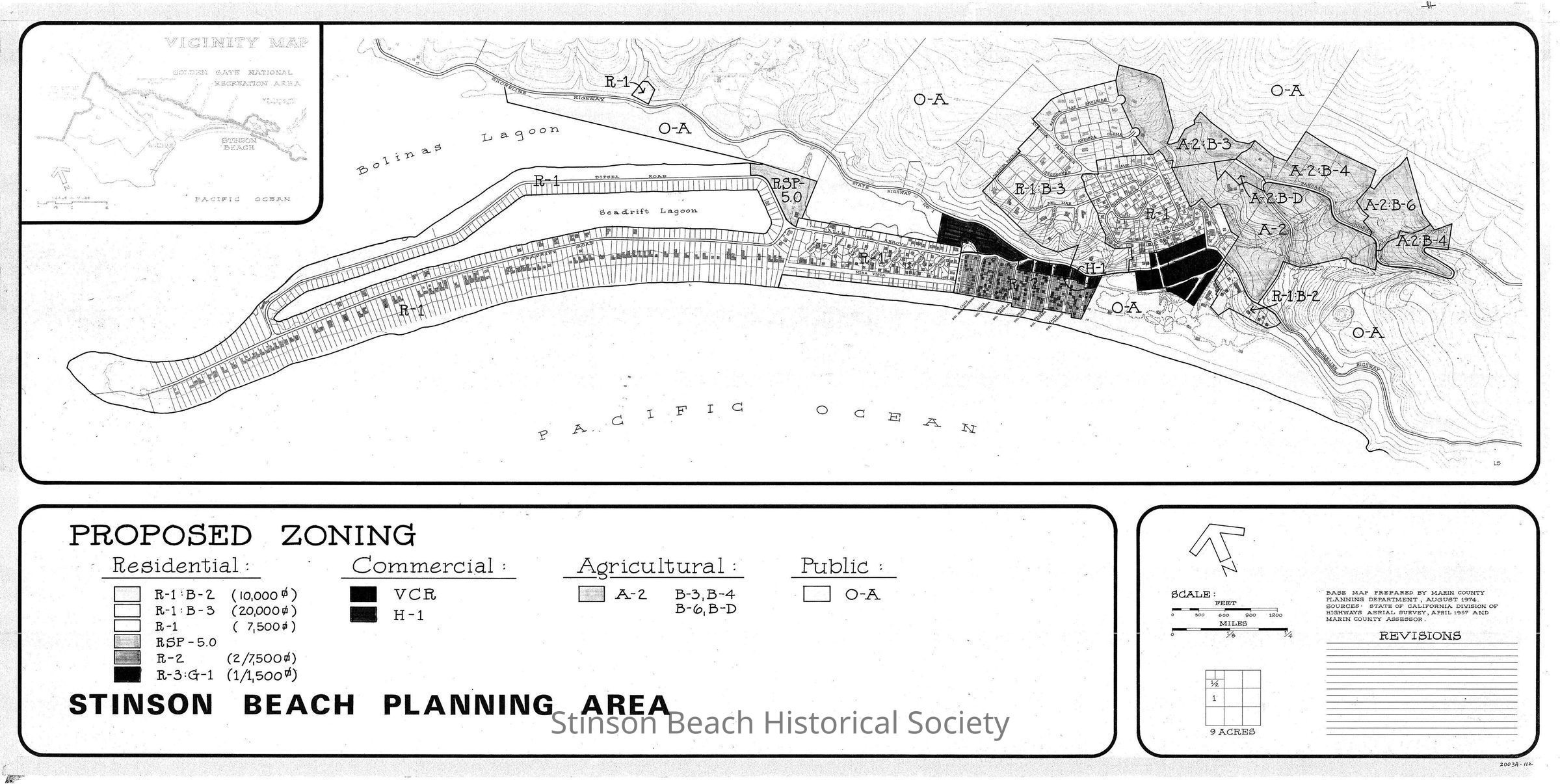 Map showing Stinson Beach Planning and Proposed Zoning.Collection