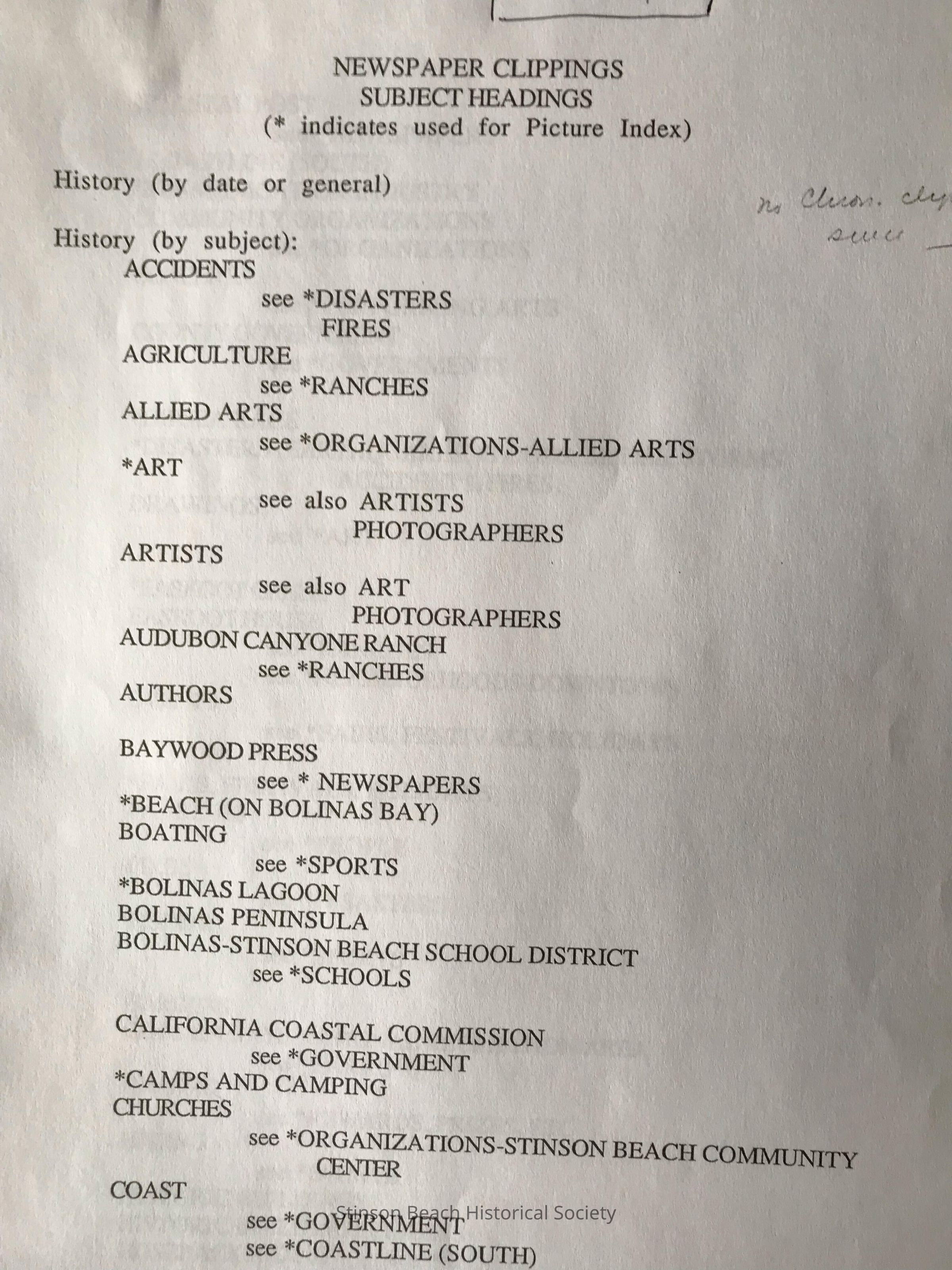 Index of how clippings are filed