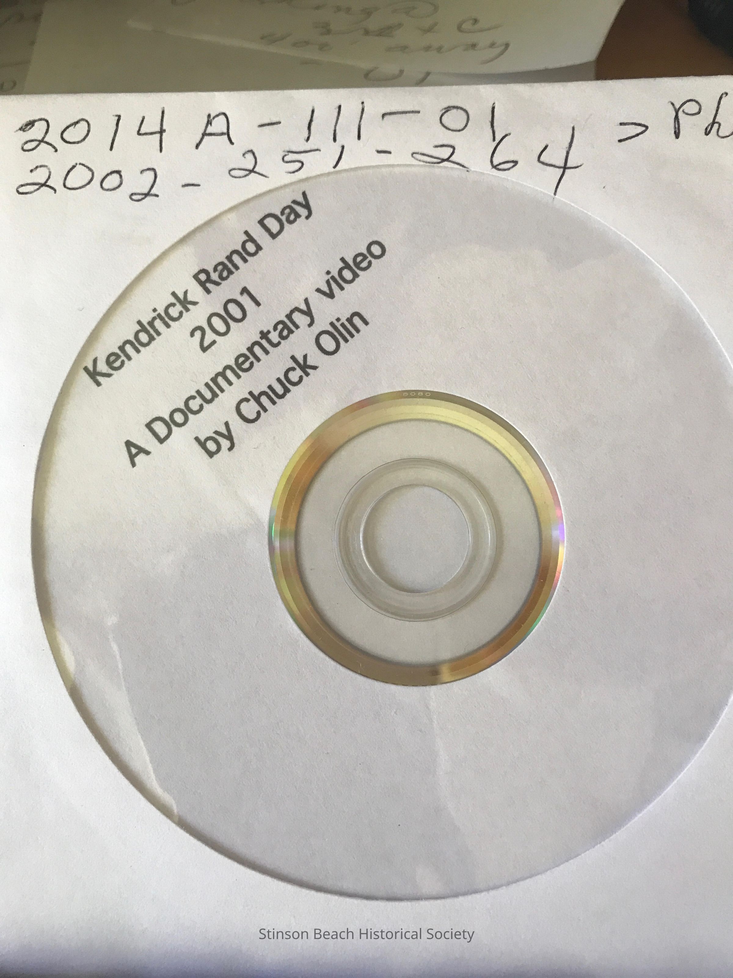 Upon Kendrick's retirement as fire chief after 25 years, the town celebrated with parade and speeches. This DVD by Chuck Olin, known for his award winning documentaries. Photos of the event are in catalog and newspaper clipping from the event that were in the Marin IJ.Acquisition