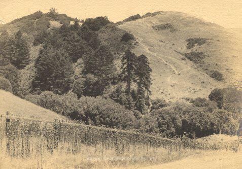Original photographic print by Edgar A. Cohen. Shows the steep trail (Dipsea Trail) coming down the mountain from Steep Ravine trail crossing. On the back of photograph: Photograph (stamped) #1887- Steep Trail out of Steep Ravine (penciled) Edgar A. Cohen, Alameda, Cal. (stamped)Collection