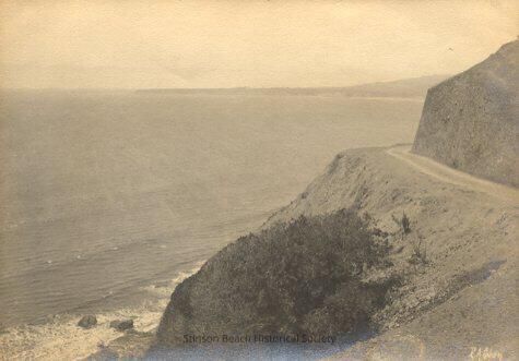 An original photograph by Edgar A. Cohen of Outside Road (Highway 1), Pacific Ocean and Duxbury Point, Bolinas on horizon. On its back: Photographs (stamped) #1911 Down Coast Road and Duxbury Point (in pencil) Edgar A. Cohen, Alameda, Cal. (stamped)Collection